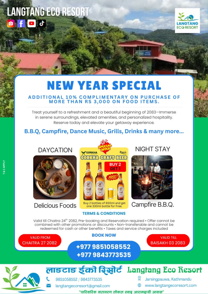Looking for the perfect place to celebrate this New Year with your friends, family, or loved ones? Escape the busy city life and step into a peaceful paradise at Langtang Eco Resort, where nature, comfort, and celebration come together to create an unforgettable experience.